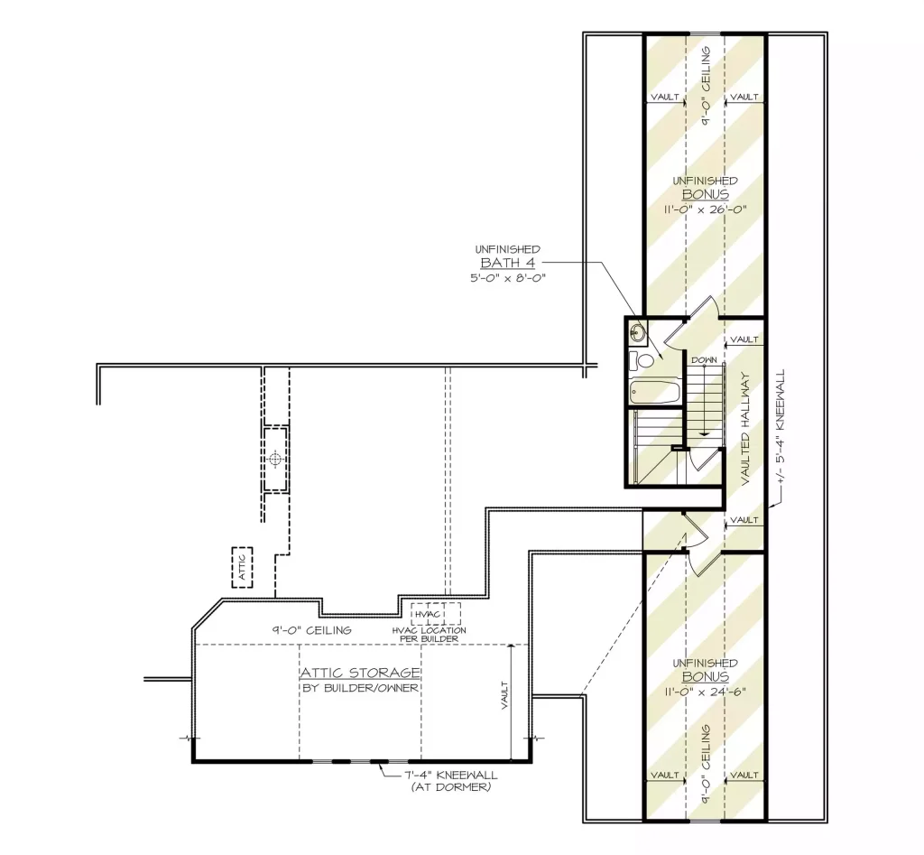 Looking for a ranch? THD-6686 is a single-story farmhouse that features three bedrooms on the main floor, with the master on one side and the two secondary bedrooms on the other. Again, notice all the bedroom suites. Individual bathrooms make life easier, because the kids will enjoy privacy—sharing a bathroom with younger siblings is no fun. If you need more room to spread out, check out the bonus spaces upstairs!