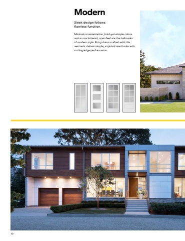 10 ModernSleek design follows flawless function.Minimal ornamentation, bold-yet-simple colors and an uncluttered, open feel are the hallmarks of modern style. Entry doors crafted with this aesthetic deliver simple, sophisticated looks with cutting edge performance.