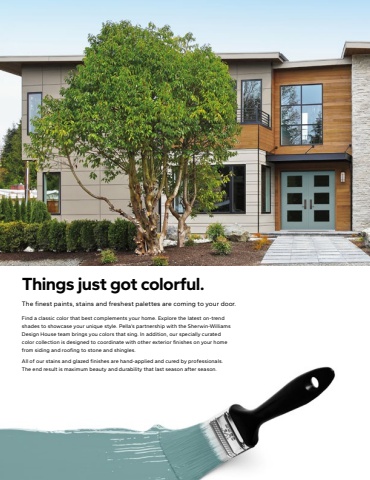 32 Things just got colorful.Find a classic color that best complements your home. Explore the latest on-trend shades to showcase your unique style. Pella’s partnership with the Sherwin-Williams Design House team brings you colors that sing. In addition, our specially curated color collection is designed to coordinate with other exterior finishes on your home from siding and roofing to stone and shingles.All of our stains and glazed finishes are hand-applied and cured by professionals. The end result is maximum beauty and durability that last season after season. The finest paints, stains and freshest palettes are coming to your door.