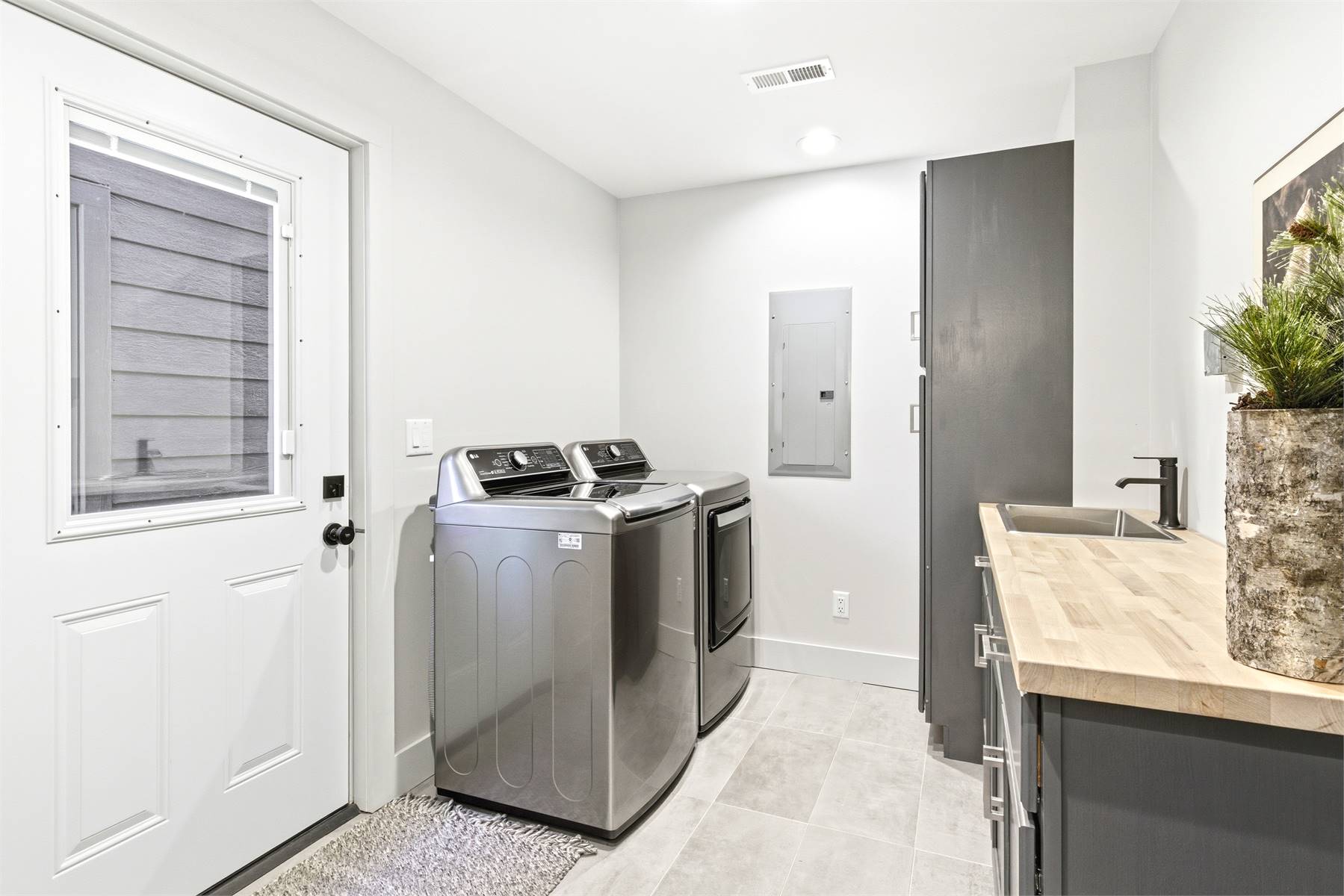 Where the rear side-entry garage connects to the house via a short breezeway, you’ll find a highly functional transition area that includes: