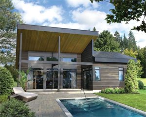 It seems that modern house plans and tiny homes have become the wave of the future! This tiny home, Foxwood (House Plan 8847), allows you to live life to its fullest. Whether you’re looking to spend more time outside, or build a second home for vacations, this 2-bedroom retreat is an affordable option. Just look at that row of patio doors that opens to outdoor living space. This setup brings in plenty of natural light and views, and it also creates the effect of doubling your square footage and makes entertaining a breeze!