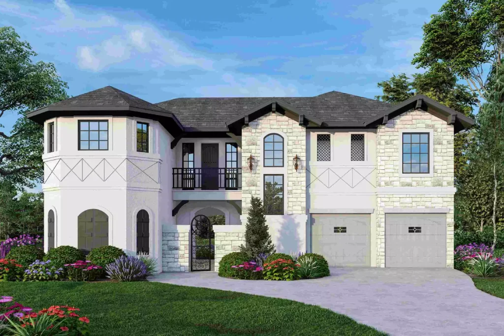 Upscale communities tend to encourage home builders to lean toward European architecture. These designs typically have two stories with old-world touches like hipped rooflines, rounded turrets, balconies, and exterior walkways. Explore the traditional beauty of House Plan 5914 and be sure to look at the floor plans, because it’s anything but ordinary inside!