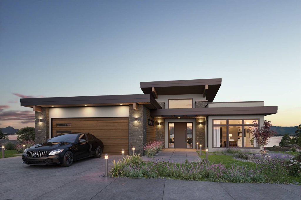 If contemporary elegance speaks to you, Plan 7662 delivers. With floor-to-ceiling windows and a vaulted foyer that fills the home with natural light, every inch is designed for luxurious lakefront living. An open-concept layout connects the living, dining, and kitchen areas—perfect for entertaining. The floor to ceiling primary suite windows and expansive deck make this plan ideal for lakeside serenity. And with a finished basement that includes two more bedrooms and rec space, this modern plan is as practical as it is stunning.