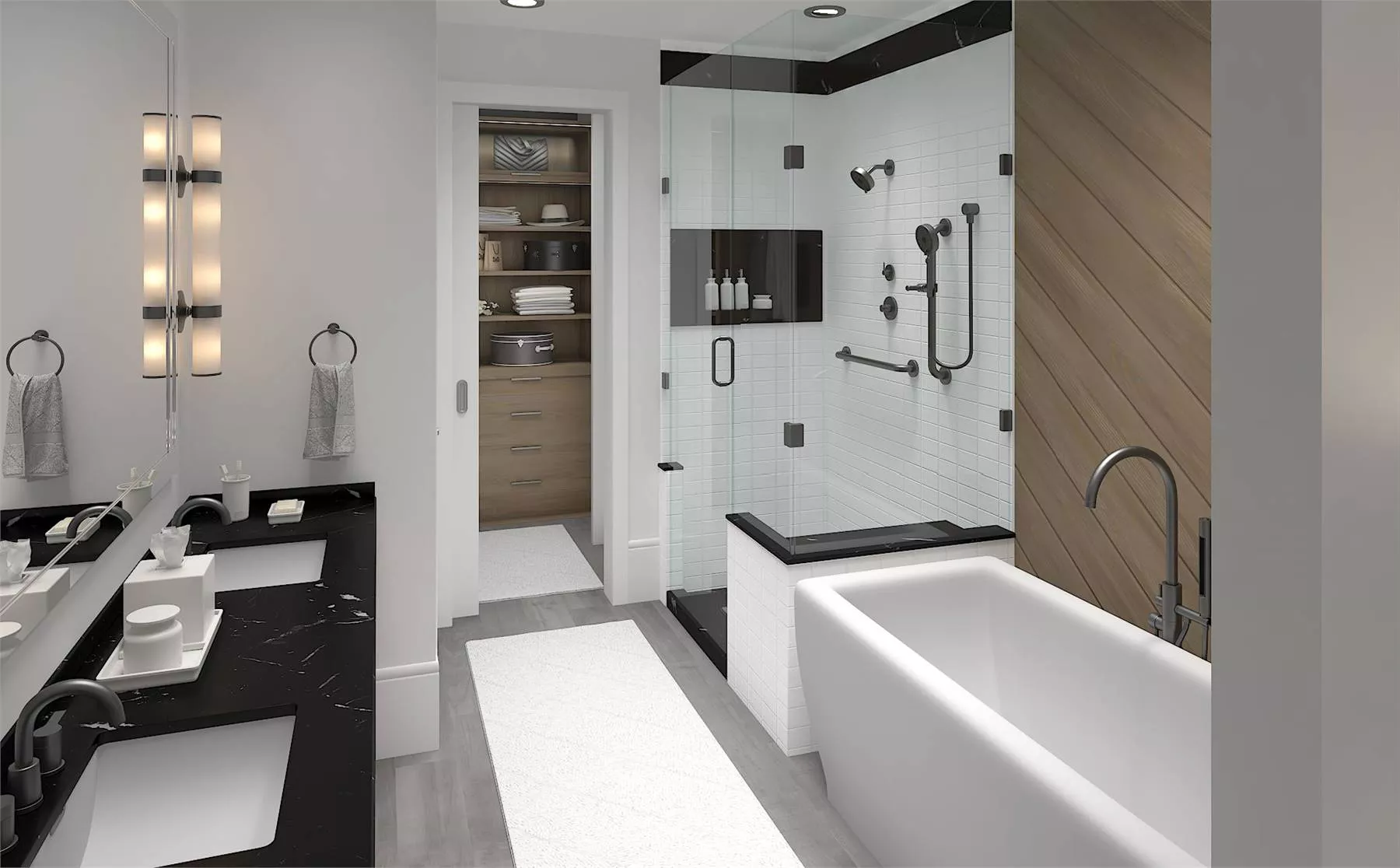 As we step onto the covered front porch, we are welcomed into a charming foyer. The foyer draws you in, revealing the master bedroom to the left—a secluded retreat with direct outdoor access for private morning coffee or serene sunset views from your personal haven. The spa-inspired ensuite boasts a double vanity sink and a separate tub and shower.