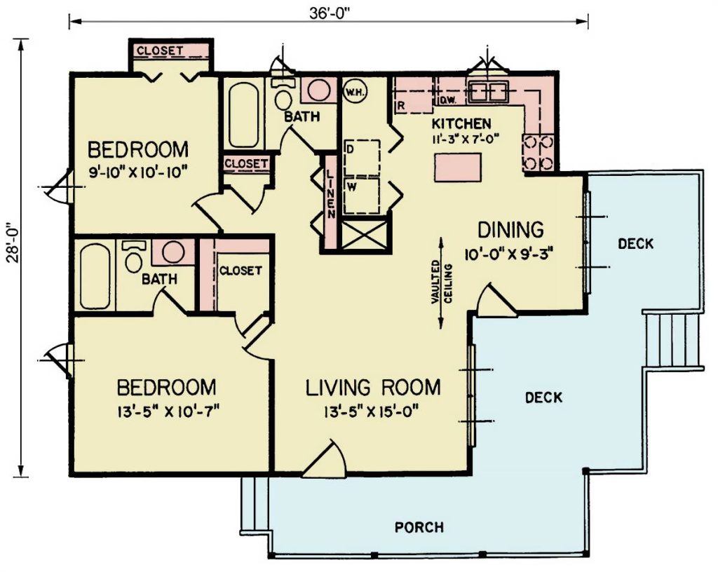 A rising summer favorite, Viewcrest is one of The House Designers’ most charming vacation home plans. At 922 sq. ft., this 2-bed, 2-bath cottage is perfect for scenic view lots, rentals, or personal retreats. Vaulted ceilings, walls of windows, and a cozy wraparound porch create the ultimate indoor-outdoor lifestyle.