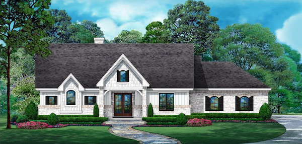 House Plan 8788 has beautiful traditional curb appeal and 1,974 square feet on one convenient level. Owners will love the study off the formal foyer and the completely open living space with a vaulted ceiling overhead. The master suite includes a five-piece bath and a large wardrobe, and there's another bedroom suite ideal for guests. With the outdoor kitchen in back, it's a great home for hosting barbecues, too!