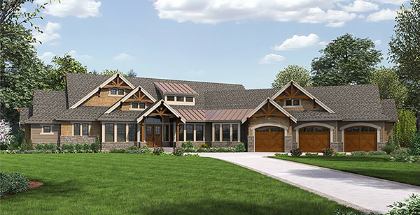 House Plan 6667 offers 5,428 square feet with all main areas and three bedrooms on one level. When you enter, the foyer is flanked by the den and formal dining area. The vaulted great room, island kitchen, and nook make up the heart of the home. On one side, the master suite is privately placed off its own vestibule while two other bedroom suites are separated by the garage entrance and laundry room down the other hall. There's also a game room at the end that connects to the nook, awesome outdoor living, and an exercise room in the garage. If you need more, look to the loft!