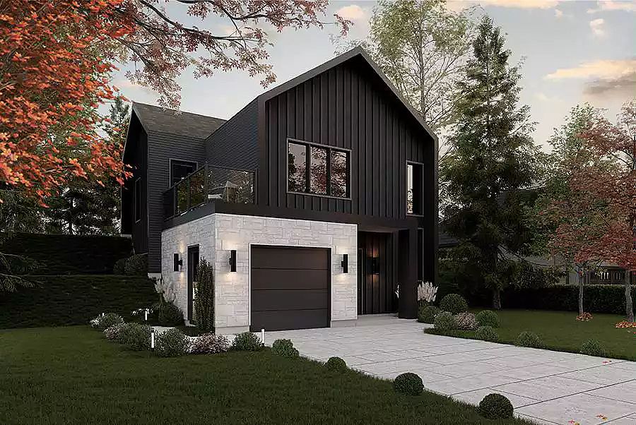 House Plan 10160 is made for an upslope and is a great choice for a view lot. It offers 1,462 square feet, three bedrooms, and two bathrooms across two levels. The entry floor includes the drive-under garage, the secondary bedrooms, and the laundry while the primary bedroom is upstairs along with the common spaces. The living area is separate from the eat-in kitchen with a peninsula bar and room for a table for some functional definition. There's also access to the backyard on this level, and a balcony off the kitchen for front and side views!