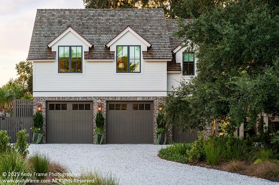 Are you looking for a home with a garage in front, but without direct front-entry access? That's what you'll find with our courtyard garage house plans! These designs have garage doors that face inward—either on an angled garage, like seen above, or a garage in front of the house with doors on the front side. It's a great way to get a larger driveway, show off architectural details, and potentially maximize a tight lot. If you're looking for a grand example, House Plan 10619 offers a dramatic view from the street with chic gables, mixed siding, and a three-car courtyard garage. The floor plan has a unique shape to take in sweeping views in back, too!
