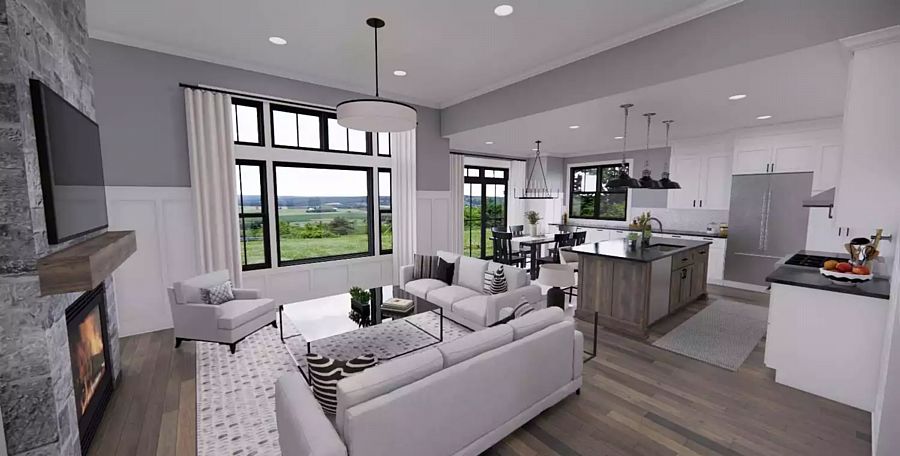 House Plan 11021 is a one-story, country-style home with 1,762 square feet in a relatively compact shape. The layout places two bedrooms, a hall bath, and the office in a hallway off the foyer while the primary suite is in back, beside the great room with a cozy fireplace and an island kitchen. If you'd like to expand this design, the basement foundation adds 1,027 square feet with two more bedrooms, another bathroom, and a family/rec room. There are also two storage rooms—one large and one small—to help reduce clutter inside and keep the family organized!