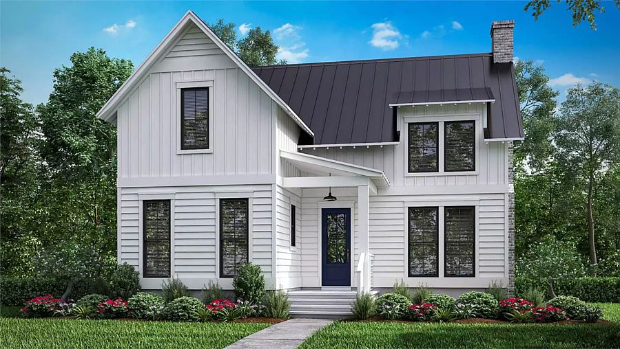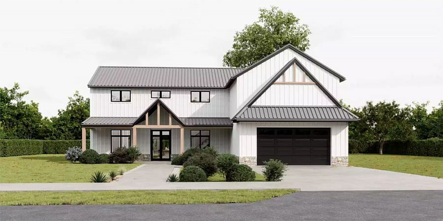 House Plan 11142 makes a wonderful choice for growing families thanks to its 2,587-square-foot layout with four bedrooms and three-and-a-half baths. The great room wows with a two-story cathedral ceiling over the living and dining areas, complete with a cozy fireplace flanked by floor-to-ceiling windows! The L-shaped island kitchen has clear sightlines of the space and connects to the hallway where you'll find access to the two-car garage in front, the five-piece primary suite in back, and the utility and powder rooms in the middle. Head upstairs and there's a loft overlooking the great room, a sizable media room, and three bedrooms including a private suite and two that share a Jack-and-Jill bath.