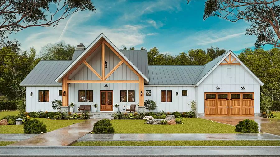 House Plan 12318 may look familiar, and that's because it's the latest addition to our popular Haystack series! This new take on a favored floor plan offers 2,070 square feet with three bedrooms and three-and-a-half baths in the same kind of split-bed layout with private suites that made House Plan 2386 our top selling design of 2025 and second place among our builder clients. The difference? This version moves the kitchen back to fall in a straight line with the dining and living areas, which opens up space off the foyer for a study. There's also a mudroom and a workshop area in the garage!