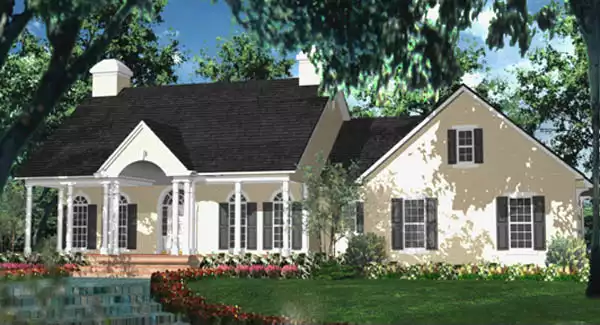 Our single story colonial house plans deliver the elegance and symmetry of colonial architecture on a convenient single level. These homes feature distinctive colonial style elements such as balanced window displays, brick exteriors, and central front doors, all on one level for easy living. They are perfect for those who love the character of colonial design and prefer the convenience of single-story living.