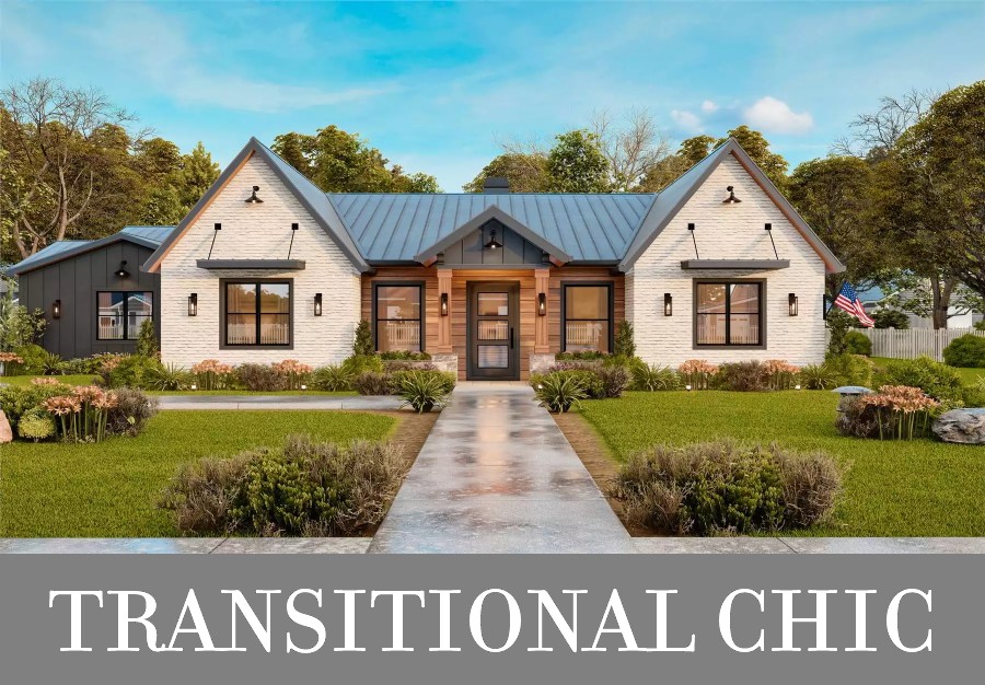 House Plan 10312 offers unique style with streamlined gables, mixed siding, and modern windows ready to take in views from the front and/or back. And with 2,743 square feet with three split bedrooms and an office, it makes a wonderful home for a growing family. The spacious open floor plan places the vaulted great room in front, beside the island kitchen, while the dining space sits in back. You'll enjoy indoor and outdoor fireplaces, covered porch space, a luxury primary suite, and more!