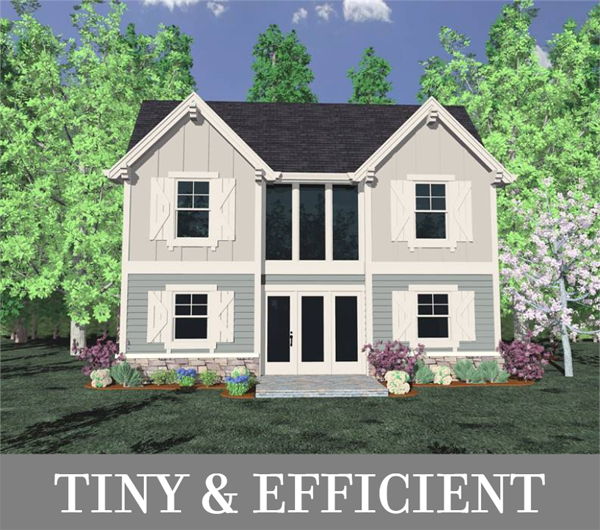 At only 892 square feet, House Plan 7485 fits nicely into the tiny category, and it might surprise you! The first floor has an open floor plan with a U-shaped kitchen, as well as a full bath. Two bedrooms upstairs share a hall bath, and there's a secret loft through a pull-down door for more space!