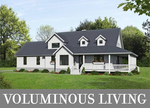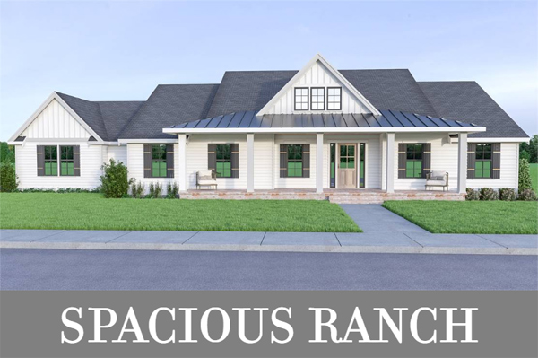 If you want a spacious ranch with farm style, House Plan 7839 boasts 2,883 square feet on one level. Four bedrooms and an office offer plenty of private space, and the open concept living will bring everybody together. The pantry and mud, laundry, and powder rooms are neatly laid out by the garage.