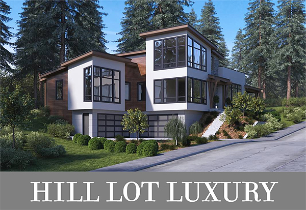 With two stories on two drive-under garages, House Plan 4252 makes the most of a slope! The main level has open living space, a den, and a unique bonus room with a kitchenette, bedroom, and bathroom that would be perfect for guests. Upstairs, you'll find an awesome master suite and another bedroom.