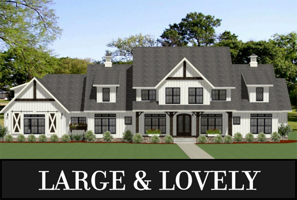House Plan 8706 features a unique narrow footprint for the main house and a studio over the detached garage, a setup that's perfect if you host longterm guests or would like rental income. This home has formal and informal living spaces, an office, media space, and vaulted ceilings in every bedroom!