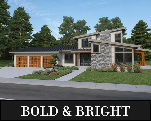 House Plan 7718 has 2,555 square feet and plenty of naturally brightened volume to appreciate in the two-story great room. You'll also love that it has a dining room with walls of windows on three sides, a den off the foyer, outdoor living in back, and garage parking for cars and a boat.
