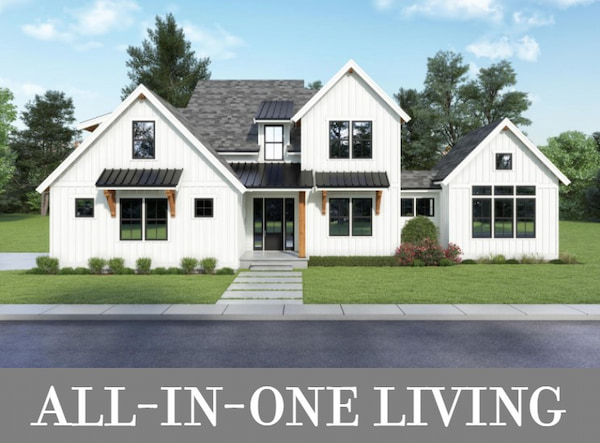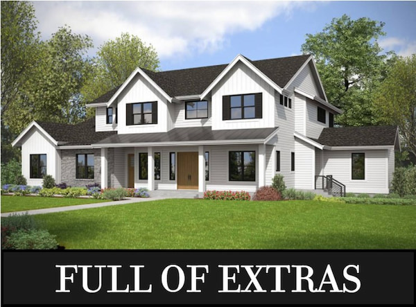House Plan 1615 has 3,635 square feet and so much more than you expect to find in a home. Beyond the split bedrooms and open concept living, you'll find an office off the foyer for the at-home worker and a school room upstairs for at-home learning. There's also a gym and a rec room for the kids, but it's the bright, vaulted hearth room—set apart from the rest of the house—that really makes this design stand out.