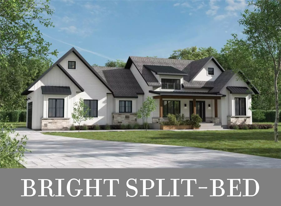 House Plan 6365 offers 1,729 square feet with three split bedrooms and open living surrounded by plenty of windows. Whether you enter through the front door or the side-entry garage, a coat closet is ready to accept outerwear. The dining area sits up front while the island kitchen and living look out to the outdoor living in back. The master suite has a four-piece bath, a walk-in closet, and windows on three sides while the other bedrooms share a four-piece hall bath and also have windows on two walls!