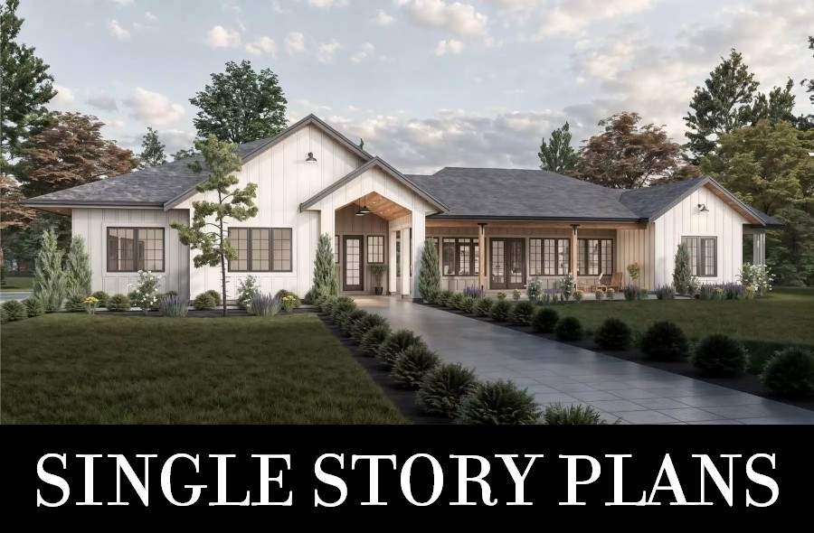 One-story house plans have wide-ranging appeal, so they make a great choice for families of all ages! Many people focus on the accessible aspect, but these homes also offer convenient flowing layouts, flexible spaces, easier maintenance, and a variety of ceiling heights. Our collection includes plans of every shape, size, and style to cater to all kinds, so come find your perfect one-story home today!