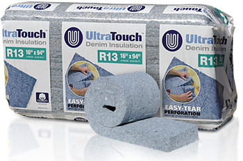 UltraTouch™ Denim Insulation is manufactured from 80% post-consumer recycled denim and provides for extremely effective sound absorption and maximum thermal performance. UltraTouch is safe for you and your family because it contains no chemical irritants, has no VOC concerns, and requires no warning labels compared to other traditional products. UltraTouch™ is also a Class-A building product and meets the highest ASTM testing standards for fire and smoke ratings, fungi resistance and corrosiveness. UltraTouch is an ideal choice for anyone looking to use a high-quality, sustainable building material in their green home.