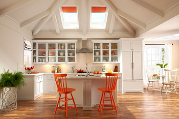 VELUX® Skylights are designed to reduce your dependence on electrical lighting and significantly lower energy costs, while creating warm and inviting light in your home. These skylights provide more privacy and a third more light than vertical windows because of their placement. They also allow for more wall space for cabinets and furniture, a great feature particularly for smaller homes where storage counts. Every VELUX® skylight meets ENERGY STAR® approval guidelines for energy efficiency in all climatic regions of the US. Their No-Leak Skylight features a 10-year installation warranty plus 20 years on glass, 10 years on product, and five years on blinds and controls.