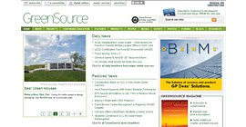 • Green Source is the official magazine of the United States Green Building Council ("USGBC") and the online version is highlighted by up-to-date articles on topics ranging from products to policy. Links to Sweets Green, blogs, forums, project highlights and book reviews put the Greensource page on another level when it comes to high quality information.