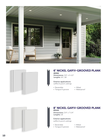 6\#9952Dimensions: 3/4\Lengths: 16' | 18'Exterior applications:soffits & porch ceilings• Reversible• Tongue & groove• Milled• Waterproof8\#3144Dimensions: 3/4\Lengths: 18'Exterior applications:soffits & porch ceilings• Reversible• Tongue & groove• Milled• Waterproof10