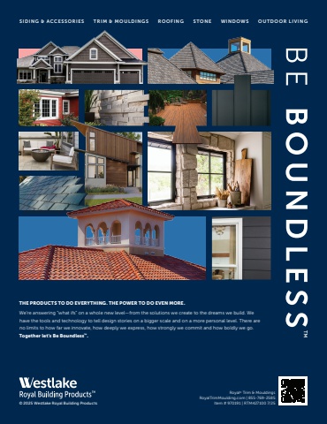 SIDING & ACCESSORIES TRIM & MOULDINGS ROOFING STONE WINDOWS OUTDOOR LIVINGRoyal® Trim & MouldingsRoyalTrimMoulding.com | 855-769-2585© 2025 Westlake Royal Building Products Item # 970191 | RTM427100 7/25THE PRODUCTS TO DO EVERYTHING. THE POWER TO DO EVEN MORE. We’re answering “what ifs” on a whole new level—from the solutions we create to the dreams we build. We have the tools and technology to tell design stories on a bigger scale and on a more personal level. There are no limits to how far we innovate, how deeply we express, how strongly we commit and how boldly we go. Together let's Be Boundless™.
