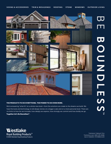 SIDING & ACCESSORIES TRIM & MOULDINGS ROOFING STONE WINDOWS OUTDOOR LIVINGTruExteior® Siding & TrimTruExterior.com | 800-521-8486Item # 301000 | TE719850 6/24THE PRODUCTS TO DO EVERYTHING. THE POWER TO DO EVEN MORE. We’re answering “what ifs” on a whole new level—from the solutions we create to the dreams we build. We have the tools and technology to tell design stories on a bigger scale and on a more personal level. There are no limits to how far we innovate, how deeply we express, how strongly we commit and how boldly we go. Together let's Be Boundless™.© 2024 Westlake Royal Building Products