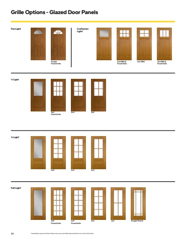 30 Grille Options - Glazed Door PanelsFull Light*3x5Fixed Grille2x5Fixed Grille2x4 2x2 9 Light Prairie3/4 Light*2x4 2x3 2x2Fan Light5 LightFixed Grille 1/2 Light3x3 Fixed Grille2x3 2x2 Craftsman Light*3x2 GBG &Fixed Grille2x2 GBG 3x1 GBG &Fixed Grille*Availability may be limited. Please see your local Pella representative for more information.