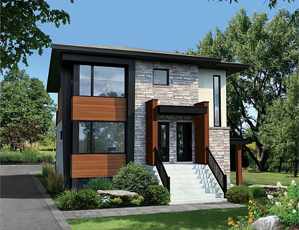 Perhaps you'd like to get into real estate? You can live in one unit of a multi-family design and rent out the rest! Our collection includes everything from duplexes to 8-plexes and beyond, so you can find the perfect size for your needs and budget. House Plan 7667, for example, is a neat triplex with a unique entrance for each bright, two-bedroom unit—the two doors in front lead to the first and second floors while there's one on the side for the basement level. Everybody has their own laundry, too!