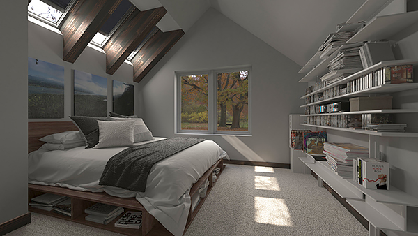 Are you looking for a home that offers a bit more than standard in the primary bedroom? Take a look at our great master suite designs! They come in homes of all sizes and have unique amenities to match. Take House Plan 9081—a small, one-story bungalow with a vaulted master bedroom. Owners love the direct outdoor access and the four-piece ensuite bath with a his-and-hers vanity, a stall shower, and a private toilet closet. You don't often see that in such a compact home!