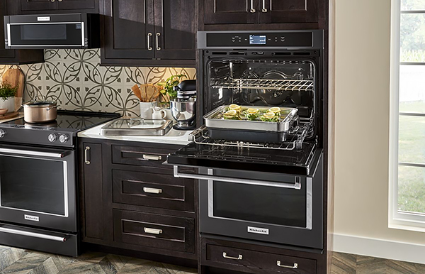 If you want a wall oven that has it all, check out the Smart Oven+ from KitchenAid®. Available in single, double, and combination configurations, you can use this unique appliance like any other, enjoy the convenience of smart connectivity, and/or kick your experience up a notch with powered attachments that allow you to bake, grill, and steam to perfection, right in the oven!