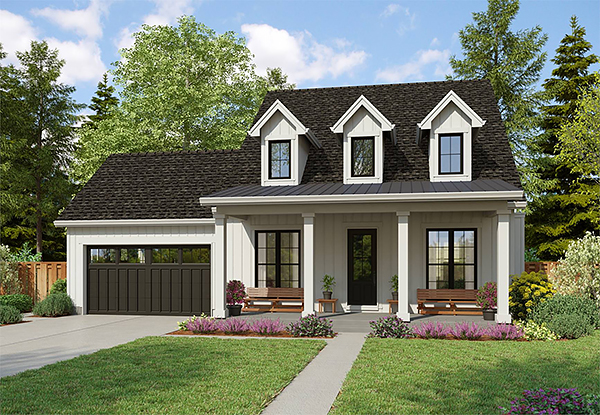 If you need a great home for a family with room for in-laws or renting out, take a look at House Plan 2375. Behind that cute façade with gabled dormers, you'll find exactly what today's homeowners want—open-concept living, an office, and a master suite on the main level with two bedrooms for the kids upstairs. And behind the garage, there's a one-bedroom apartment with its own living space, full kitchen, laundry!