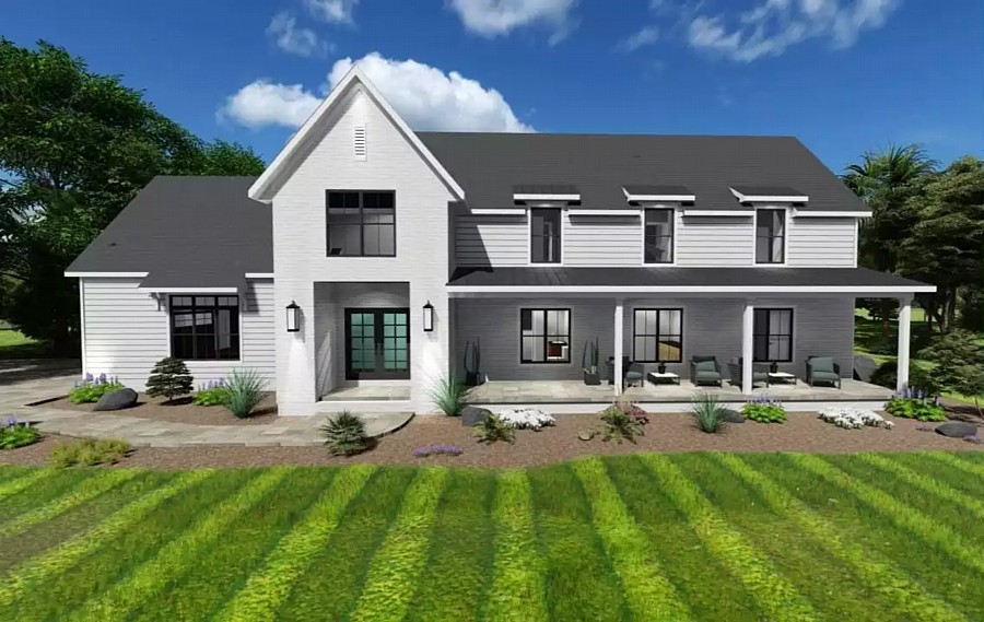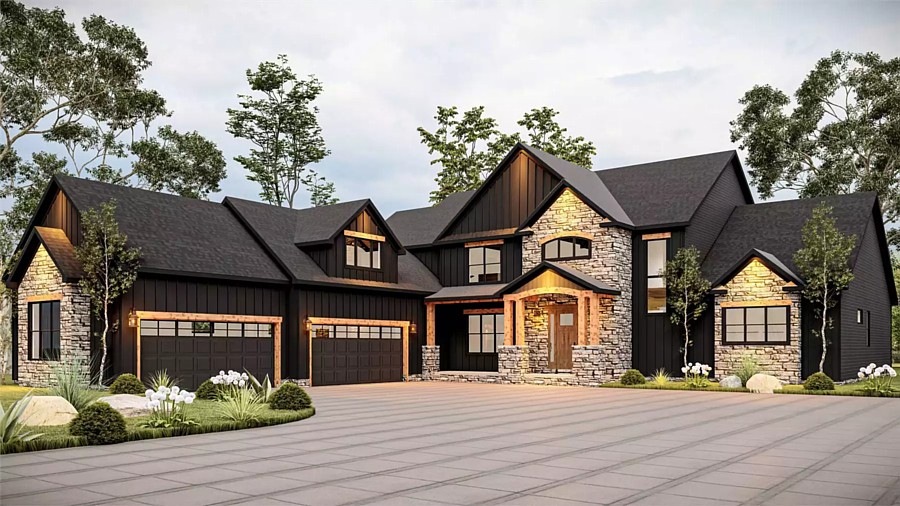 House Plan 6916 offers a grand 8,786 square feet with five bedrooms—all of them suites of different sizes! First, a motor court flanked by a two- and a three-car garage draws you in to the front door. The first floor offers formal living and dining in addition to an informal, open-concept family room beside the double island kitchen. There's also a study and a huge master suite with a sunny sitting room and an amazing ensuite with his and hers vanities and toilet closets, a central garden tub, and a gym-style shower. Upstairs, you'll find a secondary living room, a suite with a four-piece bath, and three more three-piece suites. And don't overlook the outdoor living!