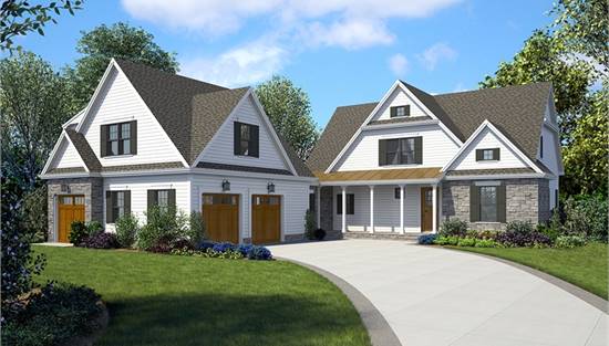 Country Farmhouse with Covered Front Porch & Gabled Roof