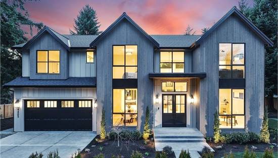 Two-Story Modern Home Featuring Symmetrical Windows