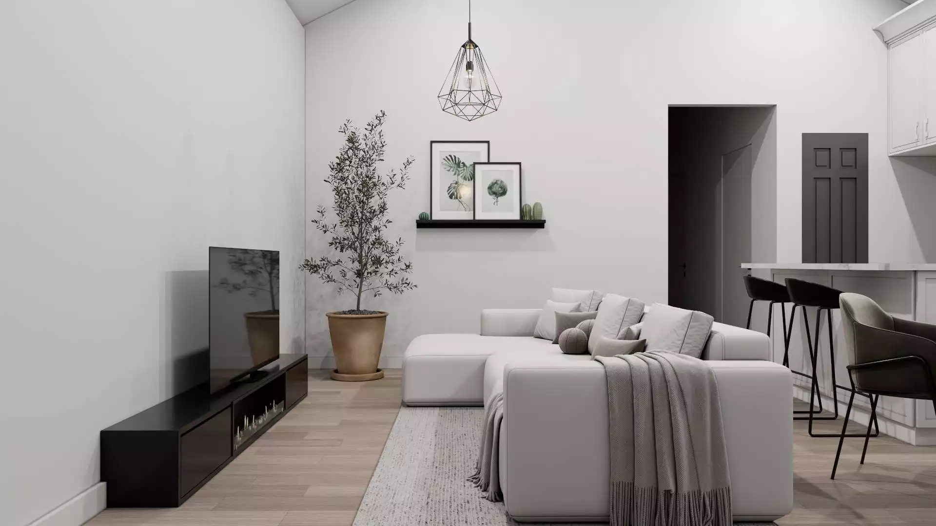 Juniper Way is a charming 750 square foot single-story home that delivers efficient, comfortable living in a thoughtfully designed layout. The large front covered porch sets the tone for a warm welcome, leading inside to an open floor plan that blends the living room, dining area, and kitchen into one inviting space. The kitchen includes a pantry for added storage, making it as functional as it is stylish.