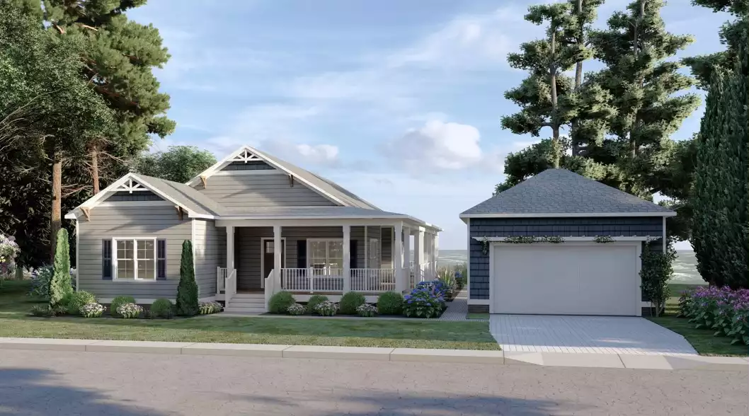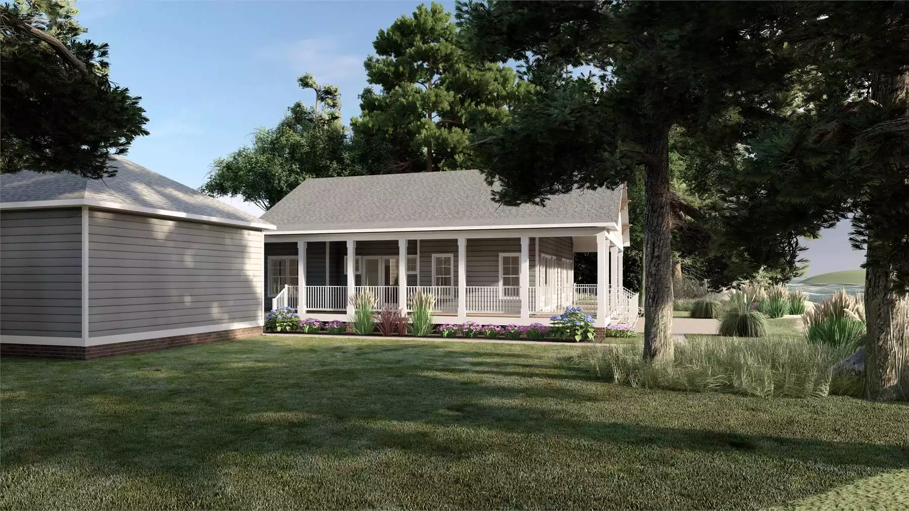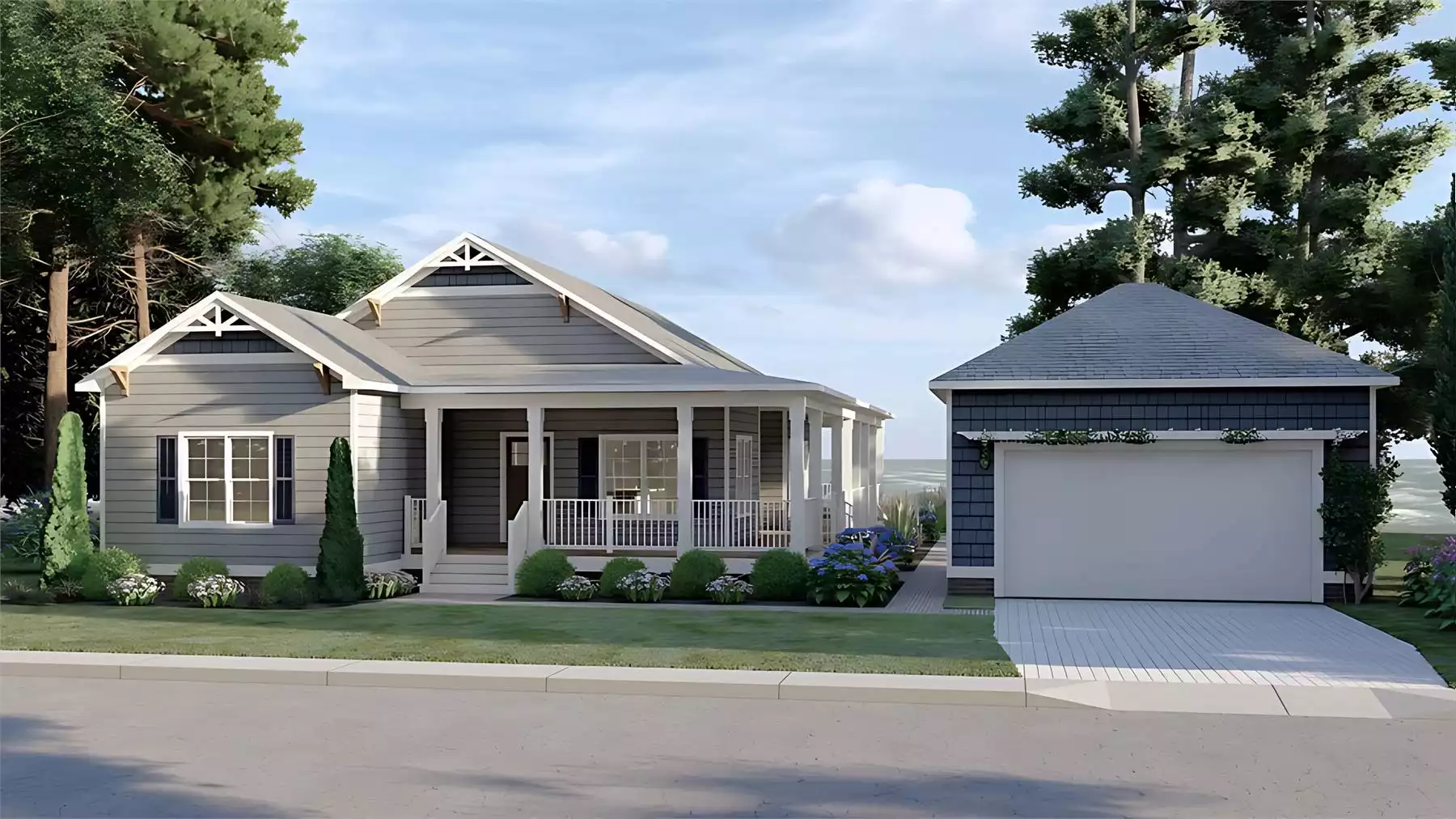 If you're looking for a beachy cottage with a single-level layout, check out House Plan 11159! This cute design offers 1,482 square feet with three bedrooms and two bathrooms as well as a spacious wraparound porch on three sides and a detached garage that you can place wherever you like. Step inside and the common areas spread back from the breakfast/dining nook beside the entry, to the island kitchen in the middle, to the vaulted family room in back. The side hallway places the secondary bedrooms in front, followed by a hall bath and the laundry room before you come to the rear primary suite with a vaulted bedroom and two reach-in closets. This nifty little home can be oriented to maximize views and/or fit onto a tight lot!