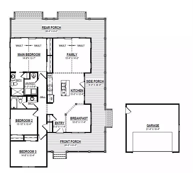 Each set of construction documents includes detailed, dimensioned floor plans, basic electric layouts, cross sections, roof details, cabinet layouts and elevations, as well as general IRC specifications. They contain virtually all of the information required to construct your home. The typical plan set does not include any plumbing, HVAC drawings, or engineering stamps due to the wide variety of specific needs, local codes, and climatic conditions. These details and specifications are easily obtained from your builder, contractors, and/or local engineers.