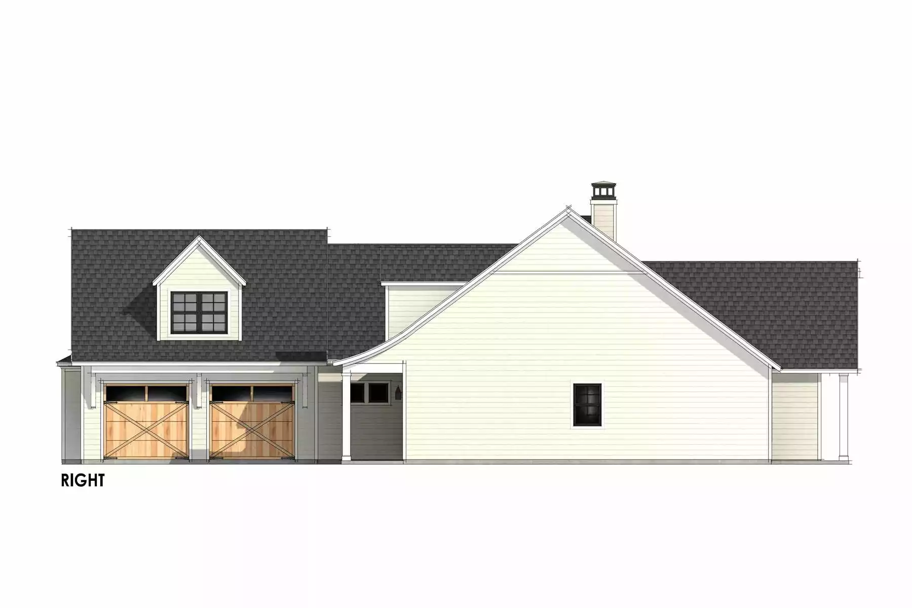 If you're looking for a classic home with Cape Cod style, see what House Plan 9208 has to offer! This 2,511-square-foot, one-story home has a front side-entry garage and gabled dormers for New England flair. Inside, you'll find an office off the foyer and open-concept living including an island kitchen, sunny dining, and a vaulted family room. The primary suite is tucked privately in the hallway behind the garage and boasts a vaulted bedroom and a five-piece bath while the other two bedroom are on the opposite side of the house along with a four-piece hall bath. This design also features a walk-in pantry, a powder room in the mudroom entry, a bonus over the garage, and covered porches in front and back!