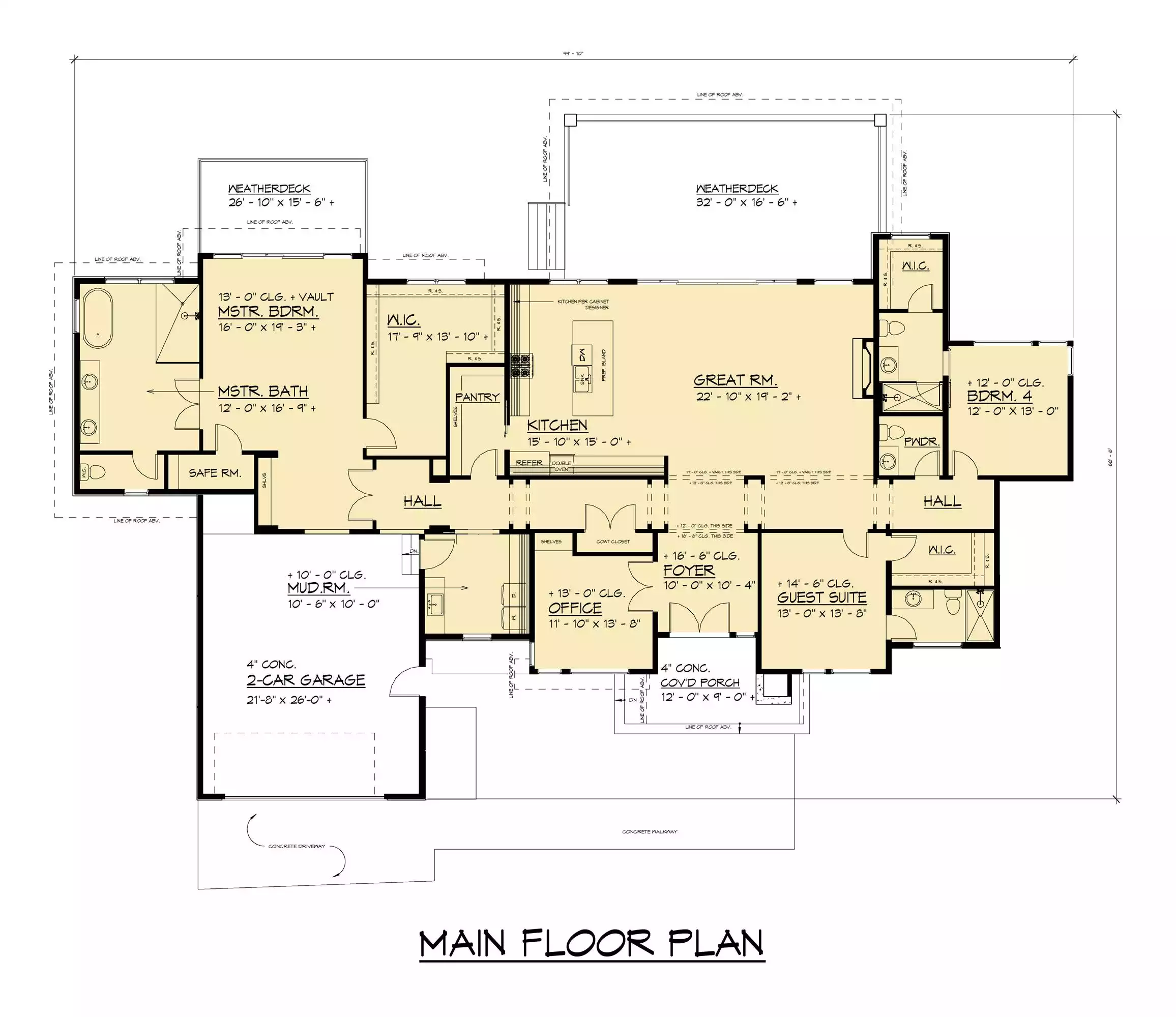 This 3167 square feet home offers 3 bedrooms and 3.5 bathrooms in a spacious layout designed for both comfort and entertaining. The open floor plan is enhanced by dramatic vaulted ceilings and 2-story volume, creating an airy and inviting great room anchored by a fireplace. The kitchen is thoughtfully designed with a large island, butler’s pantry, walk-in pantry, and breakfast nook for added functionality and storage. A private primary suite features a vaulted ceiling, walk-in closet, and a luxurious bath with a separate tub and shower and dual vanities. A dedicated guest suite and split bedroom layout provide comfort and privacy for family and visitors. Additional highlights include a home office, mud room, and first-floor laundry for everyday convenience. Outdoor living is elevated with a covered front porch, rear porch, and expansive deck, creating the perfect setting for relaxing or entertaining.