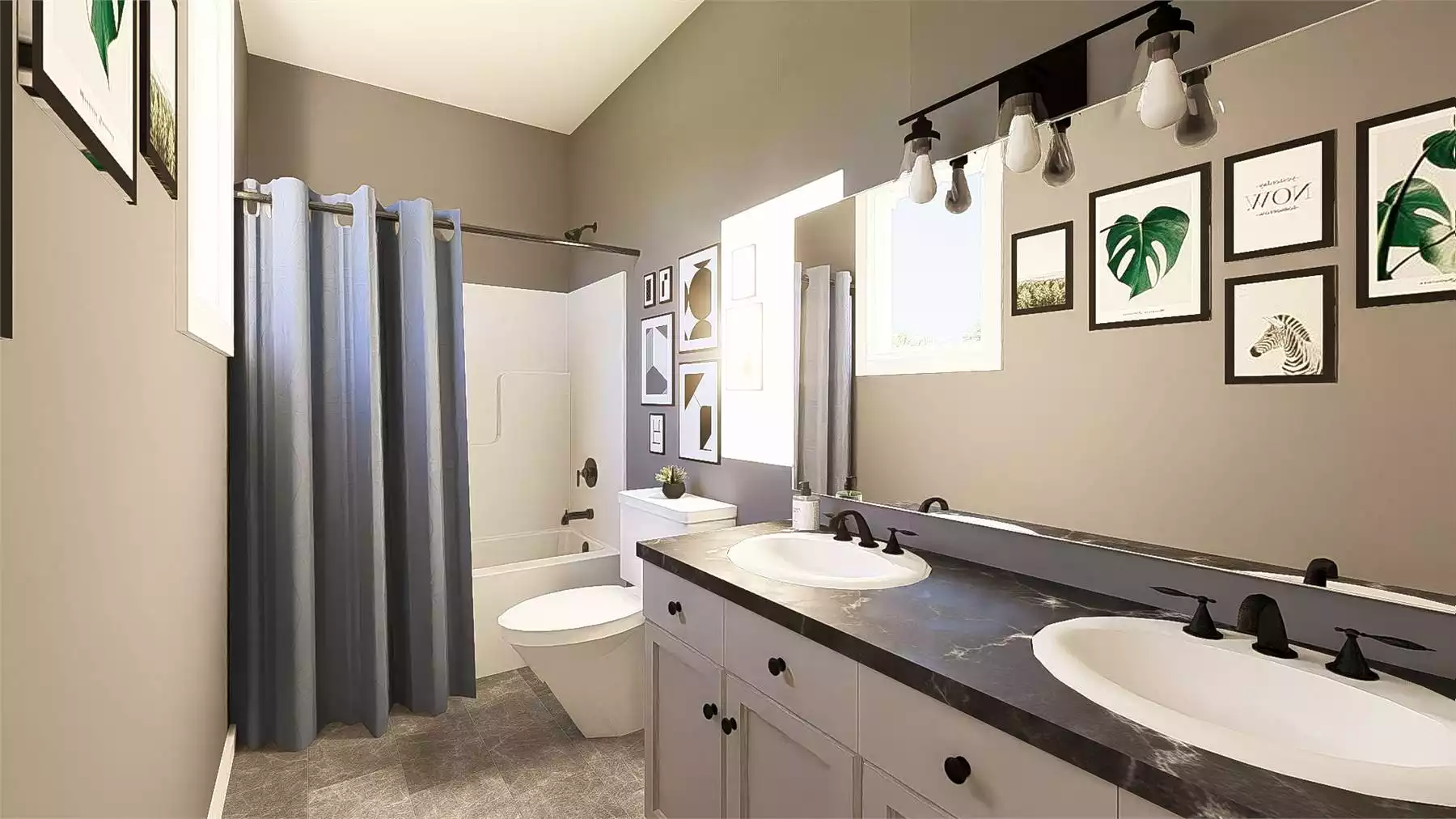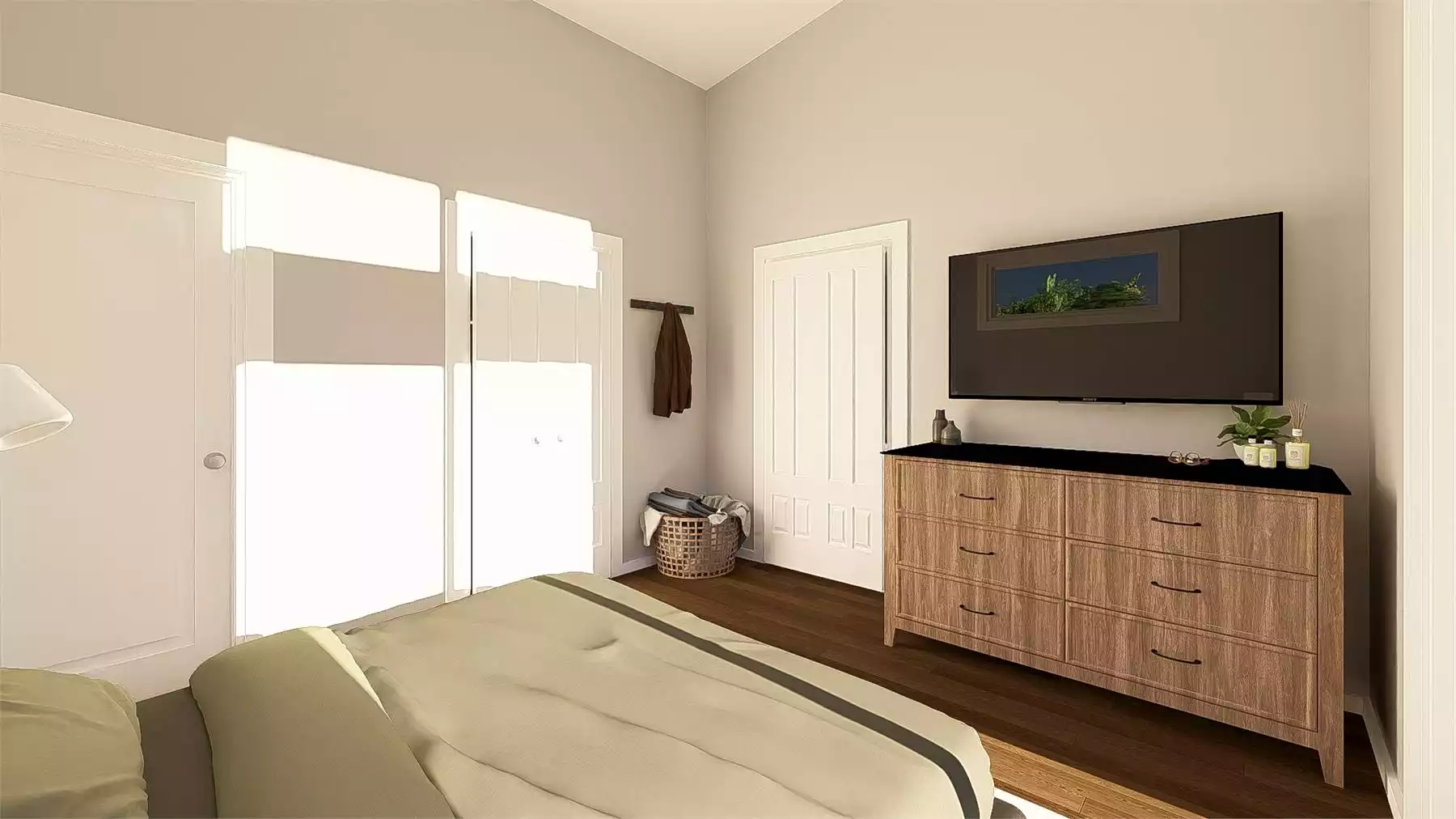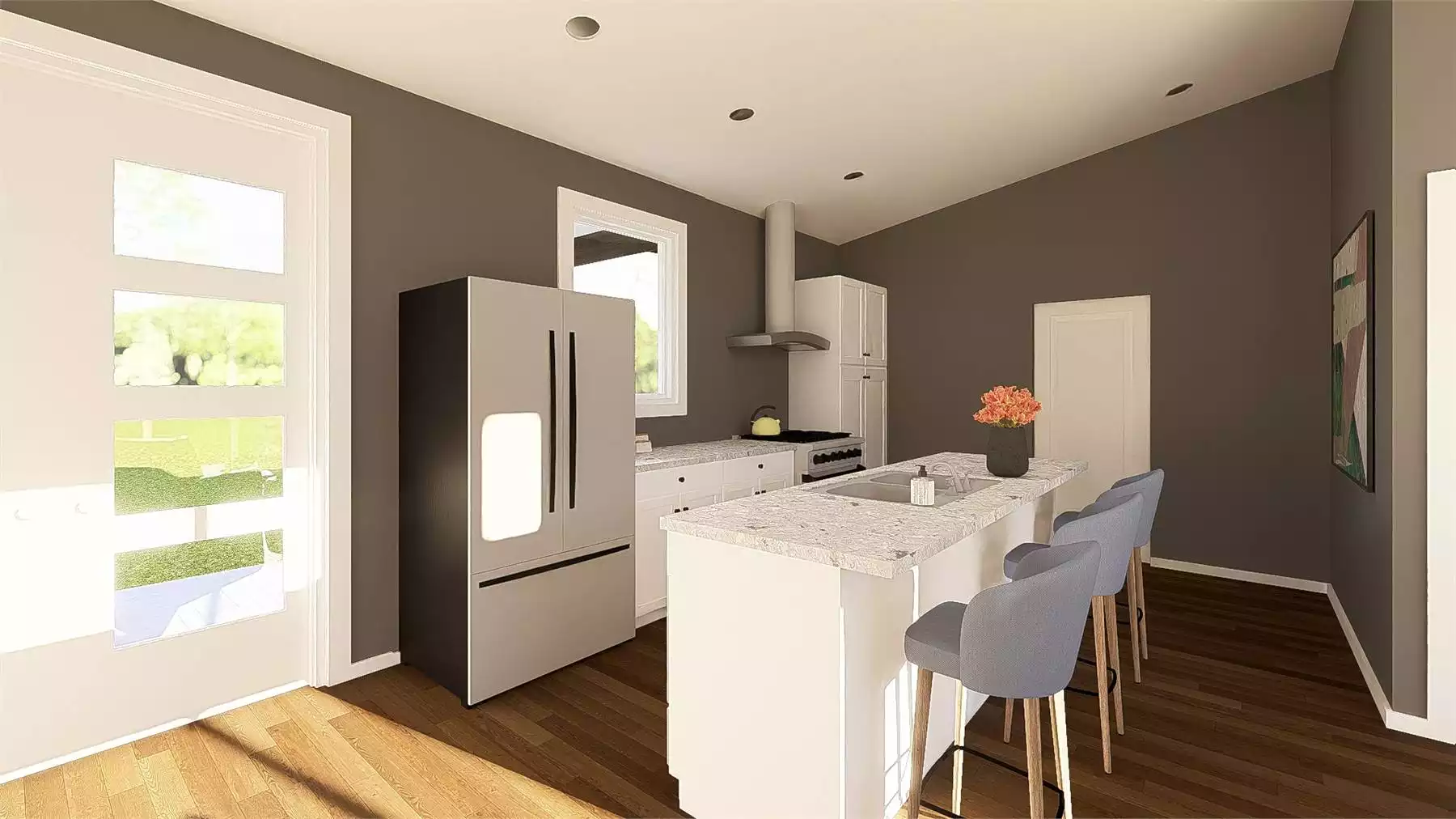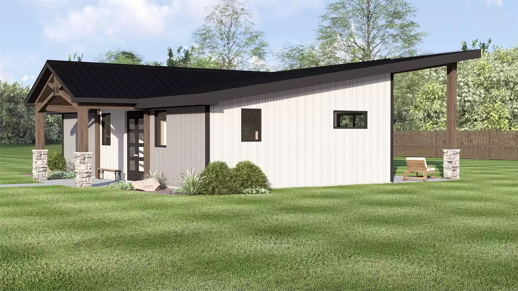 This efficient 976 square feet home offers 2 bedrooms and 2 bathrooms in a thoughtfully designed single-story layout. The open floor plan creates a seamless connection between the kitchen and living areas, making the space feel comfortable and inviting. The kitchen features a central island that provides additional prep space and a natural gathering point. A main floor primary suite includes a walk-in closet and convenient access to a full bathroom. Split bedrooms allow for added privacy, making the layout ideal for guests or flexible living. Covered front and rear porches extend the living space outdoors, perfect for relaxing or enjoying fresh air. With first-floor laundry and a simple, functional design, this home offers easy living in a warm and welcoming setting.