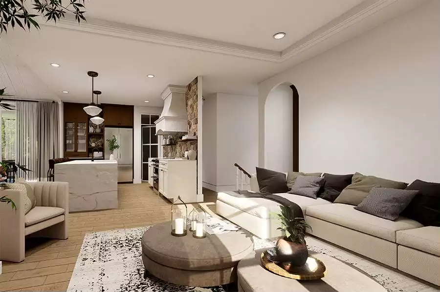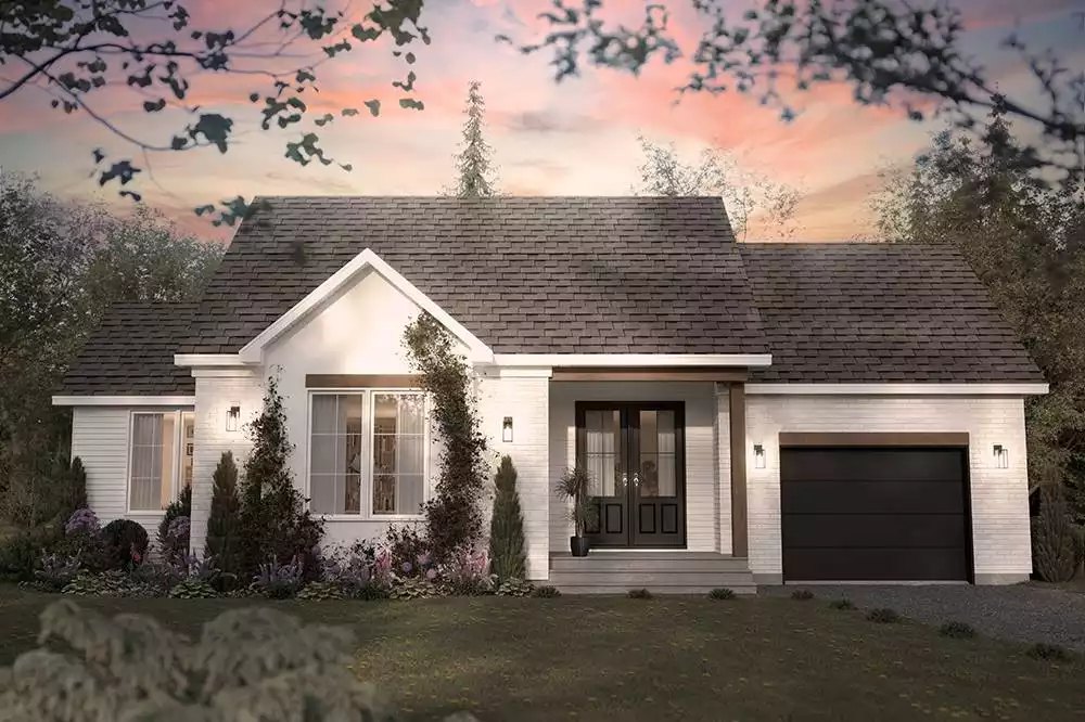 Need a thoughtfully designed cottage that makes the most of its modest space? House Plan 10698 could be what you've been searching for! With 1,352 square feet, two bedrooms, and one bathroom, it's the perfect size for first-time owners, small families, and empty nesters. Enter through the front door or the one-car garage and there's a large foyer to take your outwear. Through the arched doorway, you'll come to the great room. There's living space with a fireplace in front while the L-shaped island kitchen faces out to the vaulted dining area farther inside. This layout means you get the best of both worlds--an open-concept feel with some design definition! The back hallway is where you'll find the sleeping quarters. The primary bedroom has a walk-in closet and direct access to the five-piece bathroom while the secondary bedroom shares the bath through its hall access. This lovely home may be smaller in size, but it packs tons of charm and luxury with these amenities!