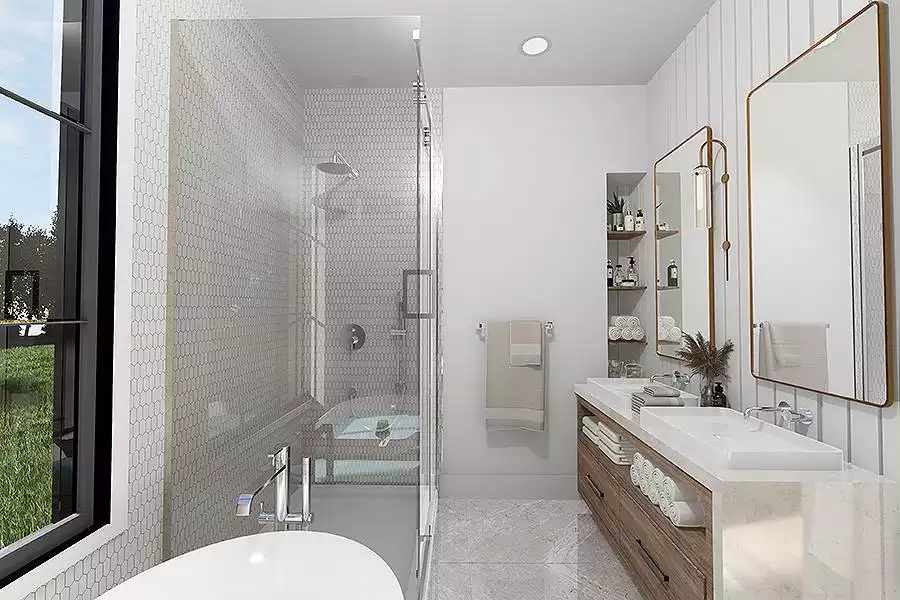 Each set of construction documents includes detailed, dimensioned floor plans, basic electric layouts, cross sections, roof details, cabinet layouts and elevations, as well as general IRC specifications. They contain virtually all of the information required to construct your home. The typical plan set does not include any plumbing, HVAC drawings, or engineering stamps due to the wide variety of specific needs, local codes, and climatic conditions. These details and specifications are easily obtained from your builder, contractors, and/or local engineers.