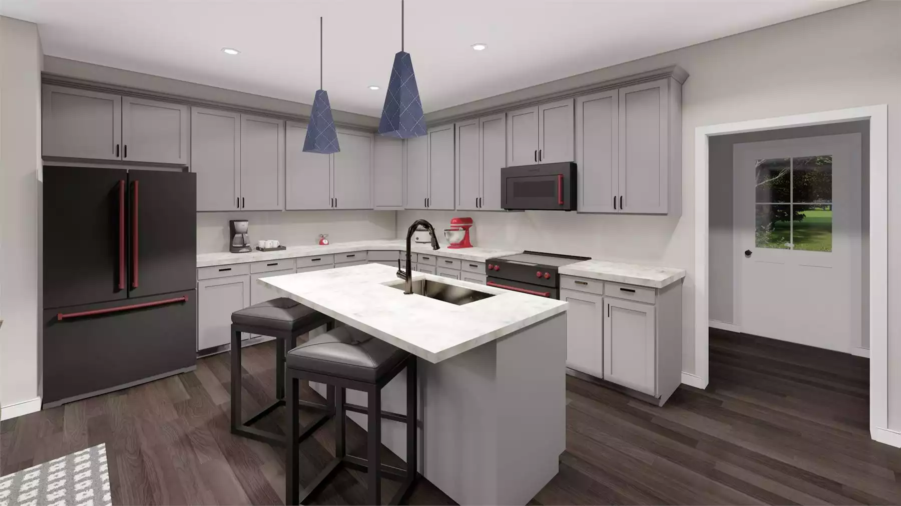 If you're looking for an affordable ranch with a classic grouped bedroom layout, House Plan 10708 could be the one for you! This 1,656-square-foot home has a simple shape to keep costs down, and with three bedrooms and two bathrooms, it's perfectly sized for a family. The interior places the great room on one side, with the vaulted living area in front and the eat-in kitchen in back. There's already an island--just add a table for sit-down meals! The rear entrance, mudroom, and walk-in pantry are placed behind the kitchen. On the other side of the house, a hallway contains two secondary bedrooms with a hall bath between them, the three-piece primary suite with a walk-in closet, and the laundry room. It's a thoughtful arrangement designed with convenience in mind!