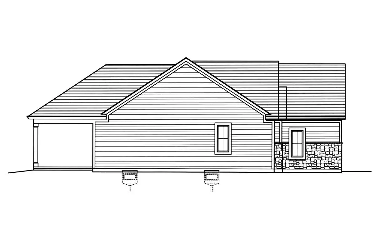House Plan 6885 is modestly sized and perfect for neighborhoods with its beautiful curb appeal, front garage, and simple shape. Inside, you'll enjoy 1,885 square feet with three bedrooms and two bathrooms in a split arrangement. A foyer with a coat closet welcomes you in before leading to the great room, where there's a fireplace in the living area and a uniquely vaulted ceiling over the living and dining spaces. The island kitchen overlooks the great room from one end. The primary suite is located in the hallway to the right, behind the garage, along with the mudroom and laundry. Owners will appreciate a tray ceiling in the bedroom, a walk-in closet, and a four-piece bath. The secondary bedrooms are located in the hallway to the left, along with a hall bath to share. This nifty design includes an unfinished basement foundation for storage or future expansion, too!
